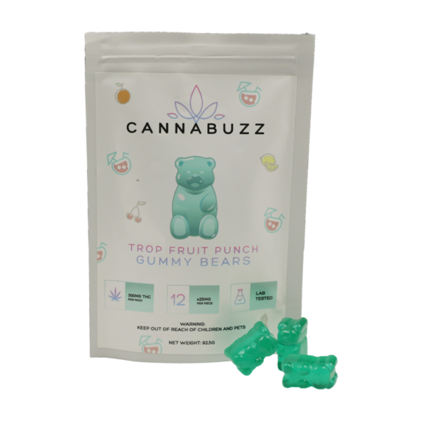 SKU: cannabuzz-tropical-fruit-punch-gummy-bears-300mg-thc Category: