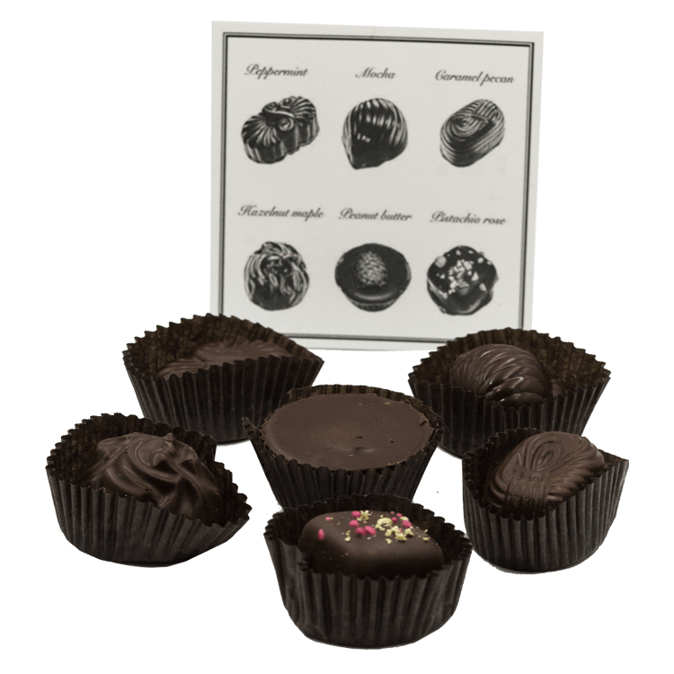 An earthy and nutty combination: Caramel Pecan, Peppermint, Peanut Butter, Hazelnut Maple, Pistachio Rose, Mocha